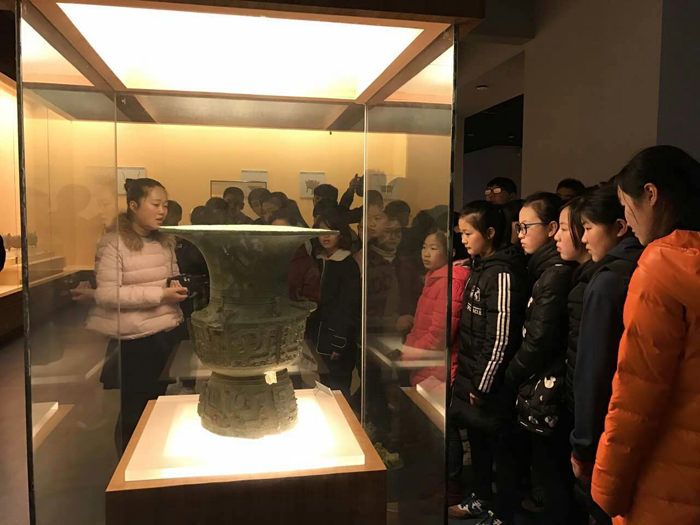 为加深学生对皖西历史文化的了解,引导学生弘扬和继承优秀的民族传统文化,对学生进行爱国主义教育,2017年3月23日下午午,六安市鹏飞学校团委组织七、八年级团员43人参观了皖西博物馆。
