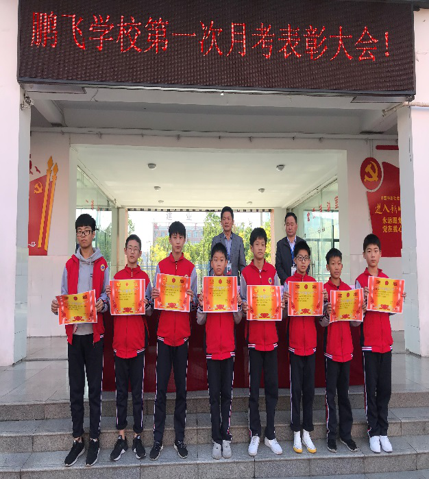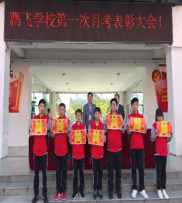 金秋十月,盛逢华诞,丹桂飘香,校园溢彩,2019年10月15日上午10点六安市鹏飞学校在学校操场隆重举行2019年秋学期初中部第一次月考总结表彰大会。会上对获得“学习之星”、 “进步之星”、 “勤学之星”、 “好问之星”等荣誉的同学进行了表彰,颁发了奖状和奖品。