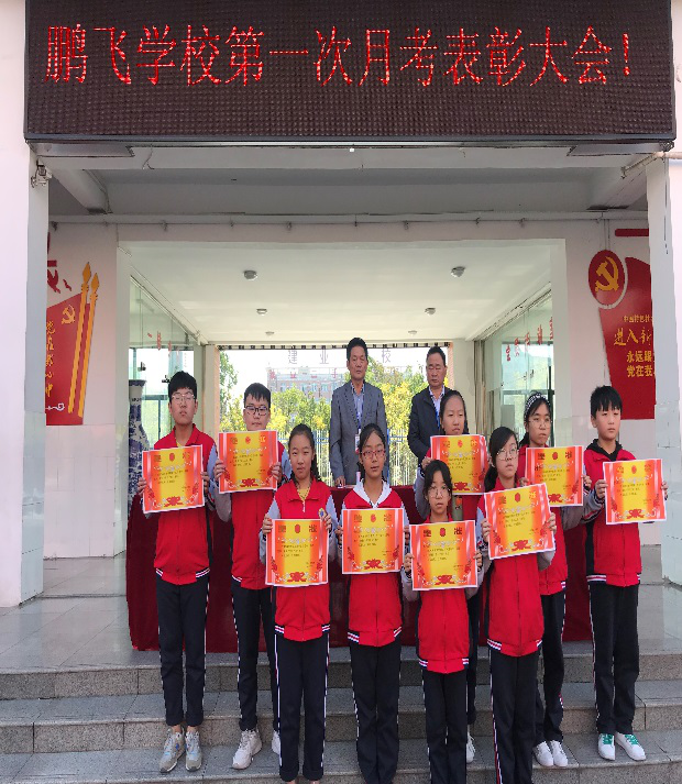 王志友校长对本次月考取得的成绩和存在的问题作了总结,并对后阶段同学们的学习提出几点希望和要求。一、鼓足敢于竞争、誓争第一的信念和勇气。当今时代,是竞争的时代,我们只有敢于竞争用于拼搏,才能不愧于这个伟大的时代。要发扬勤奋学习、刻苦钻研精神,端正学习态度、积极主动地学习,发扬中国女排顽强拼搏,不怕困难、誓争第一的精神,勤于思考。善于总结,为进一步提高学习成绩而努力。二、要掌握科学的学习方法,提高课堂效率。学会自主学习,珍惜分分秒秒;认真上好每一堂课,记住每一个知识点,认真独立思考,扎实完成老师布置的每一项学习任务,要查缺补漏,不耻下问,勤学好问。三、要养成文明守纪的好习惯,成为一名品学兼优的好学生。要严格遵守中小学日常行为规范,鹏飞学校各项规章制度和班规班约,注重仪表,穿戴整洁,规范自身的言行,学讲普通话,学会做人,学会合作,努力成为新时代的优秀学生。