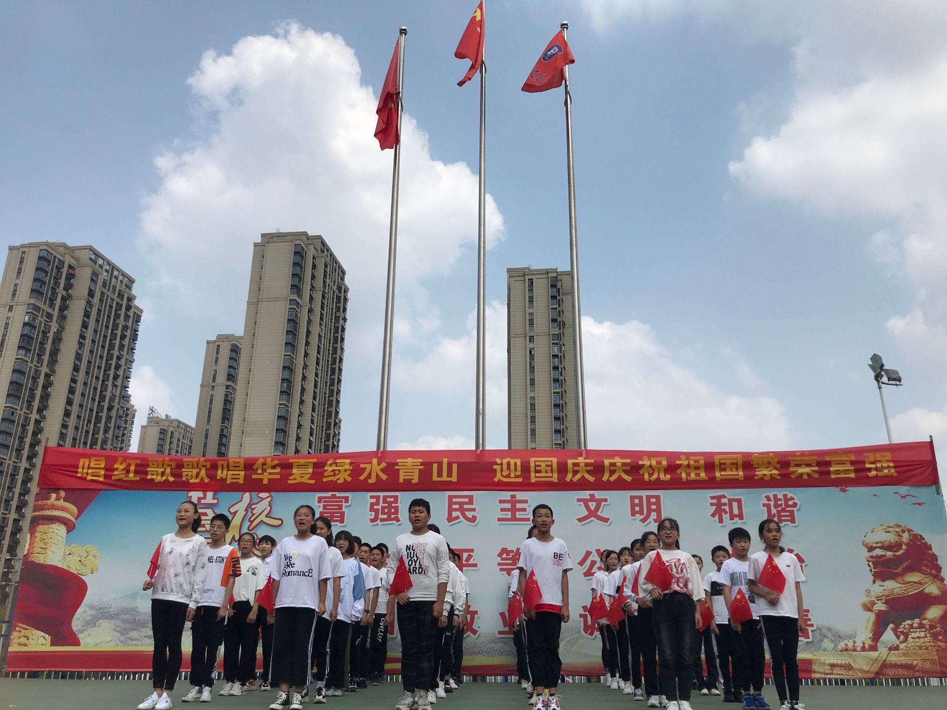 今天,2020年9月30日中午12点,六安市鹏飞学校全体师生也欢聚一堂。唱红歌歌唱华夏绿水青山,迎国庆庆祝祖国繁荣昌盛。中小学各年级以举办唱红歌比赛的形式,隆重庆祝中华人民共和国成立71周年。