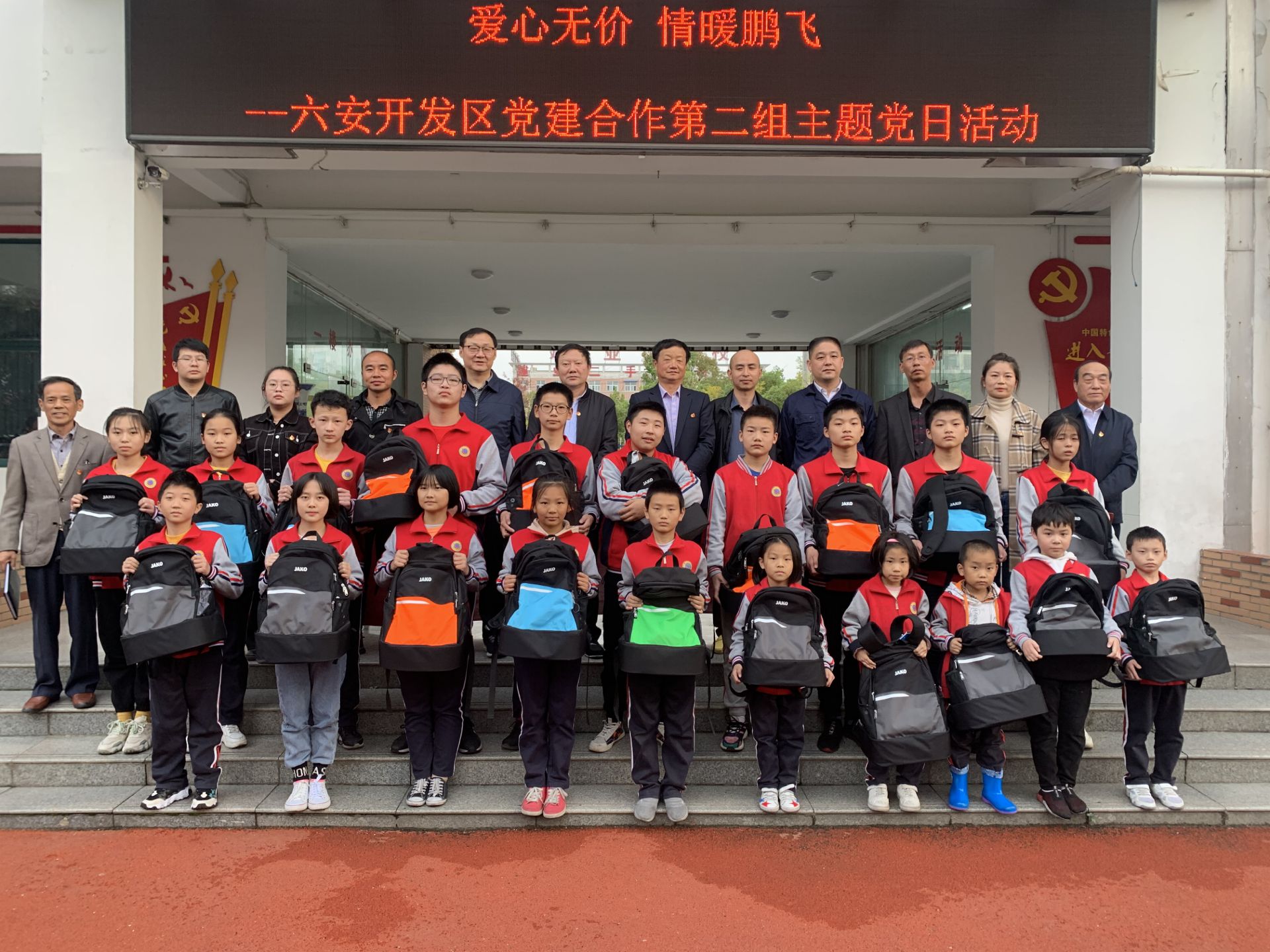 活动日的第二项内容是由红星美凯龙迎宾商城、江机数控公司、兰翔纺机公司、星星包装公司、超美包装公司、登克尔旅游品公司、星星轻纺集团等单位向贫困学生发放学习及体育用品,把党的温暖真真切切送到每个孩子的手上。爱心无价,情暖鹏飞,这次活动在六安市鹏飞学校引起了强烈反响。