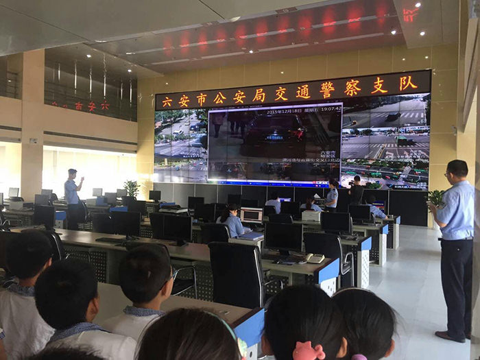 学生一行首先在14楼大厅观看了全市交通路况实时监控画面,直观地了解了全市各条道路交通情况,增强了交通安全意识。