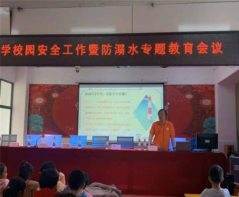 为积极落实区政府、区教育局有关学校安全工作会议精神,进一步统一思想,提高认识,4月29日下年3点半,六安市鹏飞学校特邀中科大副教授、合肥市水上救生协会会长李忠广,协会党支部书记王斌,秘书长李亚,骨干讲师卢兴亚及六安市游泳协会会长钱军等领导,出席在该校大礼堂举行的校园安全工作暨防溺水专题教育会议。全体中小学生在老师的带领下,面对面地聆听了专家们的安全知识讲座及怎样防溺水等专题报告。同学们现场观看了专家们“心肺复苏”的演示以及如何施救的多种方法。使同学们开了眼界,长了见识,增强了自我保护的意识,收益颇多。