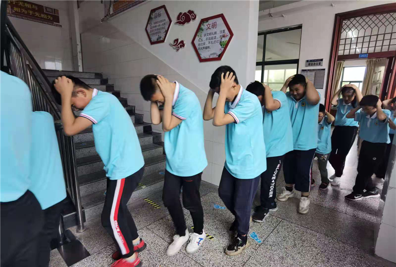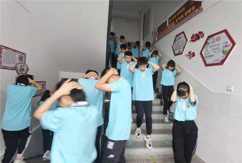 演练中各部门、各岗位工作人员分工明确,确保学生安全撤离,有序疏散,严防楼道拥挤,踩踏事故发生。