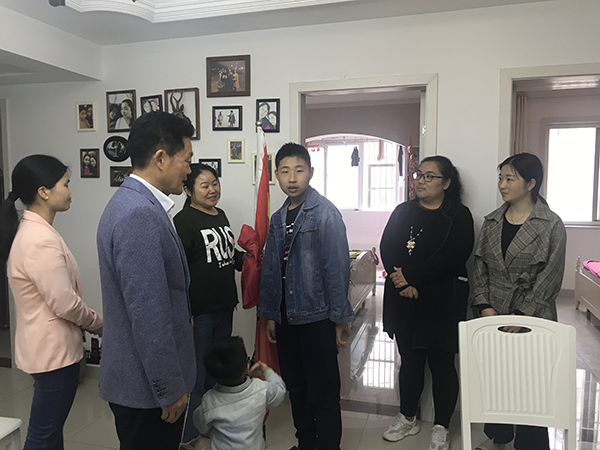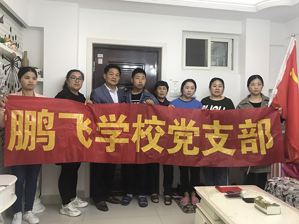 4月23日上午9时,鹏飞学校校长王志友和支部其他成员一行,来到贫困学生五1班祁明周家中进行走访慰问,给他们送去了学校和全体师生的关怀。