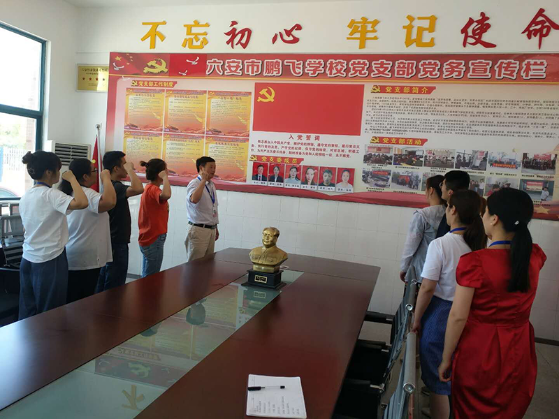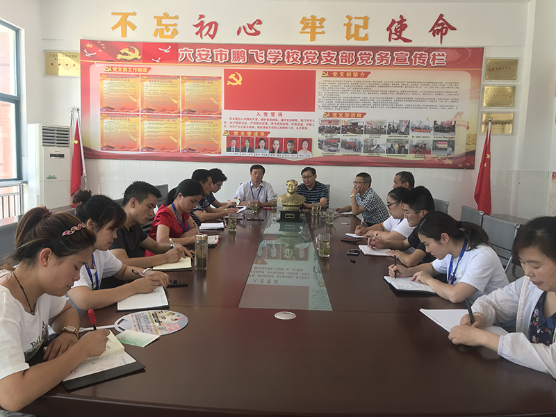 开发区组织人社丁局长就对开发区党组织创立以来的历史长河进行了简明扼要的讲述,并对鹏飞学校党支部党建业务现场指导,希望我校党支部争创一支有特色党支部基层党组织示范点。