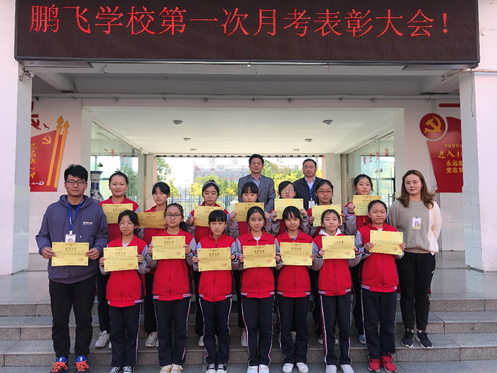 王志友校长对本次月考取得的成绩和存在的问题作了总结,并对后阶段同学们的学习提出几点希望和要求。一、鼓足敢于竞争、誓争第一的信念和勇气。当今时代,是竞争的时代,我们只有敢于竞争用于拼搏,才能不愧于这个伟大的时代。要发扬勤奋学习、刻苦钻研精神,端正学习态度、积极主动地学习,发扬中国女排顽强拼搏,不怕困难、誓争第一的精神,勤于思考。善于总结,为进一步提高学习成绩而努力。二、要掌握科学的学习方法,提高课堂效率。学会自主学习,珍惜分分秒秒;认真上好每一堂课,记住每一个知识点,认真独立思考,扎实完成老师布置的每一项学习任务,要查缺补漏,不耻下问,勤学好问。三、要养成文明守纪的好习惯,成为一名品学兼优的好学生。要严格遵守中小学日常行为规范,鹏飞学校各项规章制度和班规班约,注重仪表,穿戴整洁,规范自身的言行,学讲普通话,学会做人,学会合作,努力成为新时代的优秀学生。