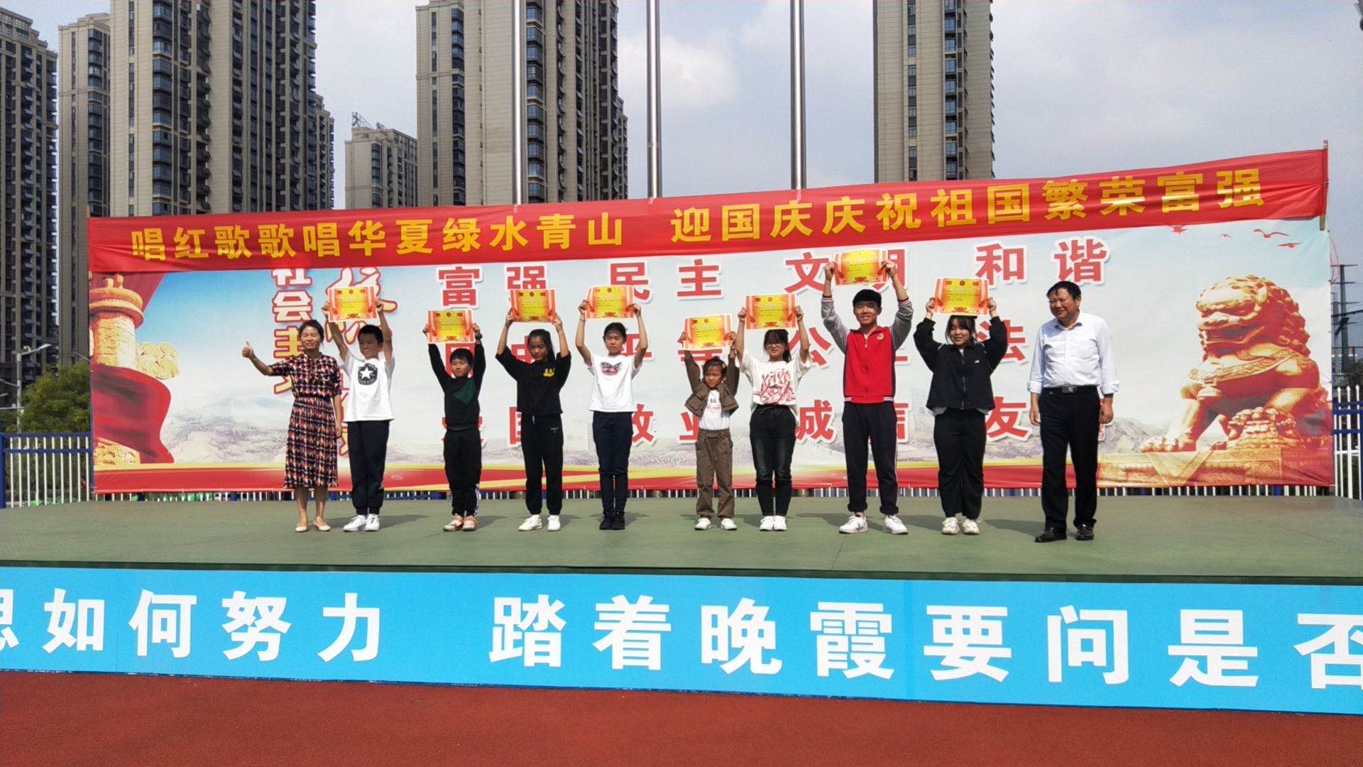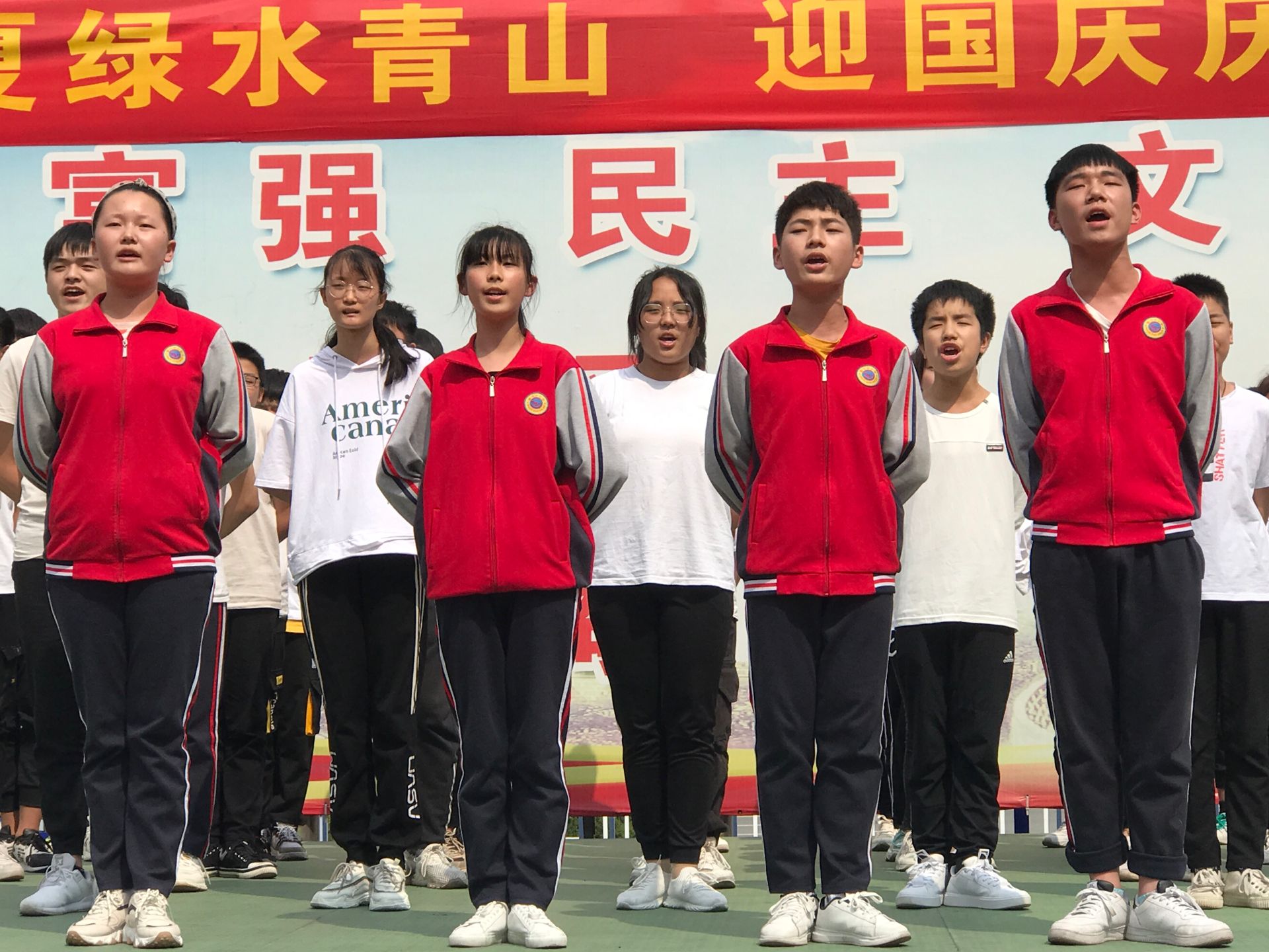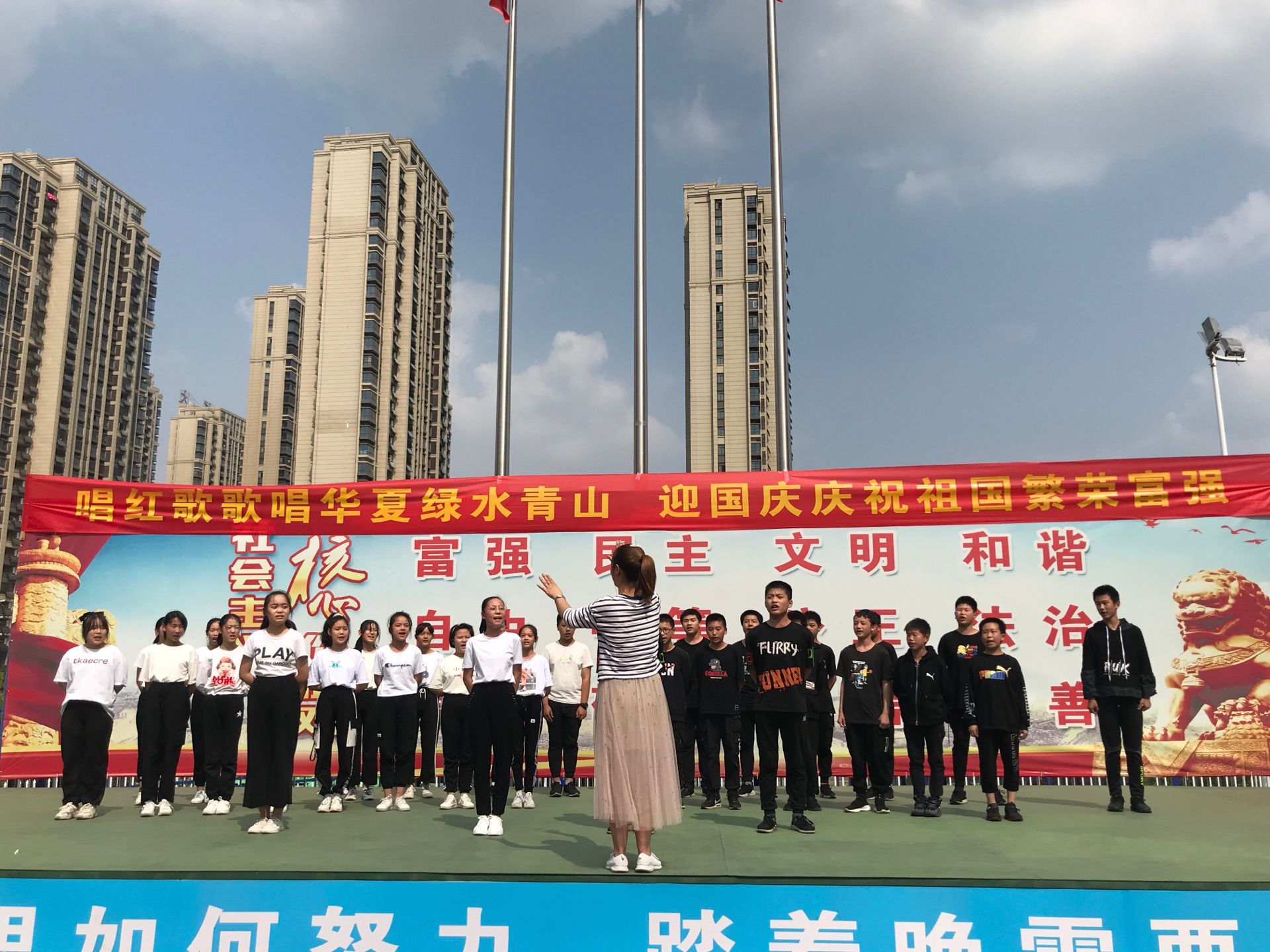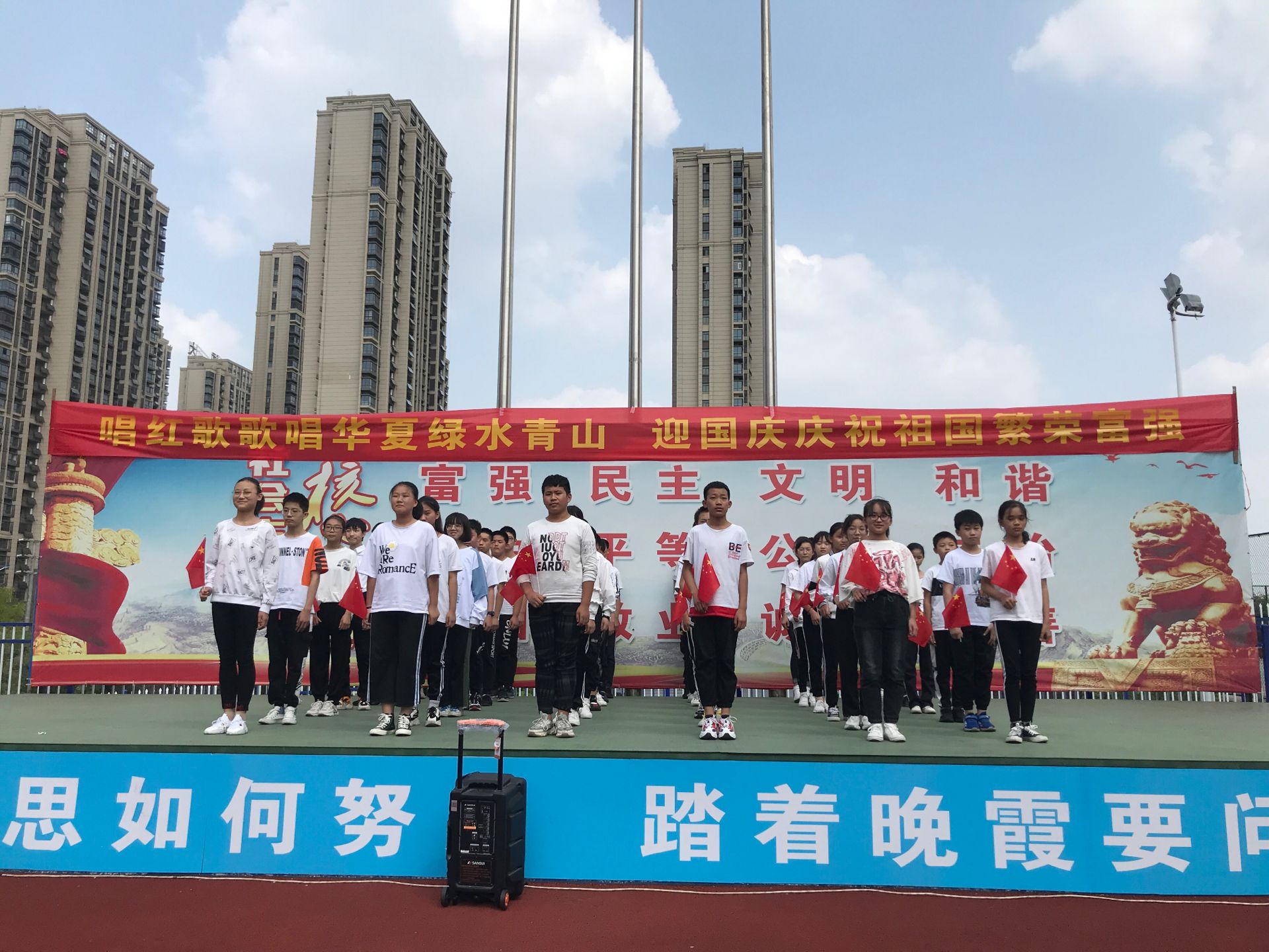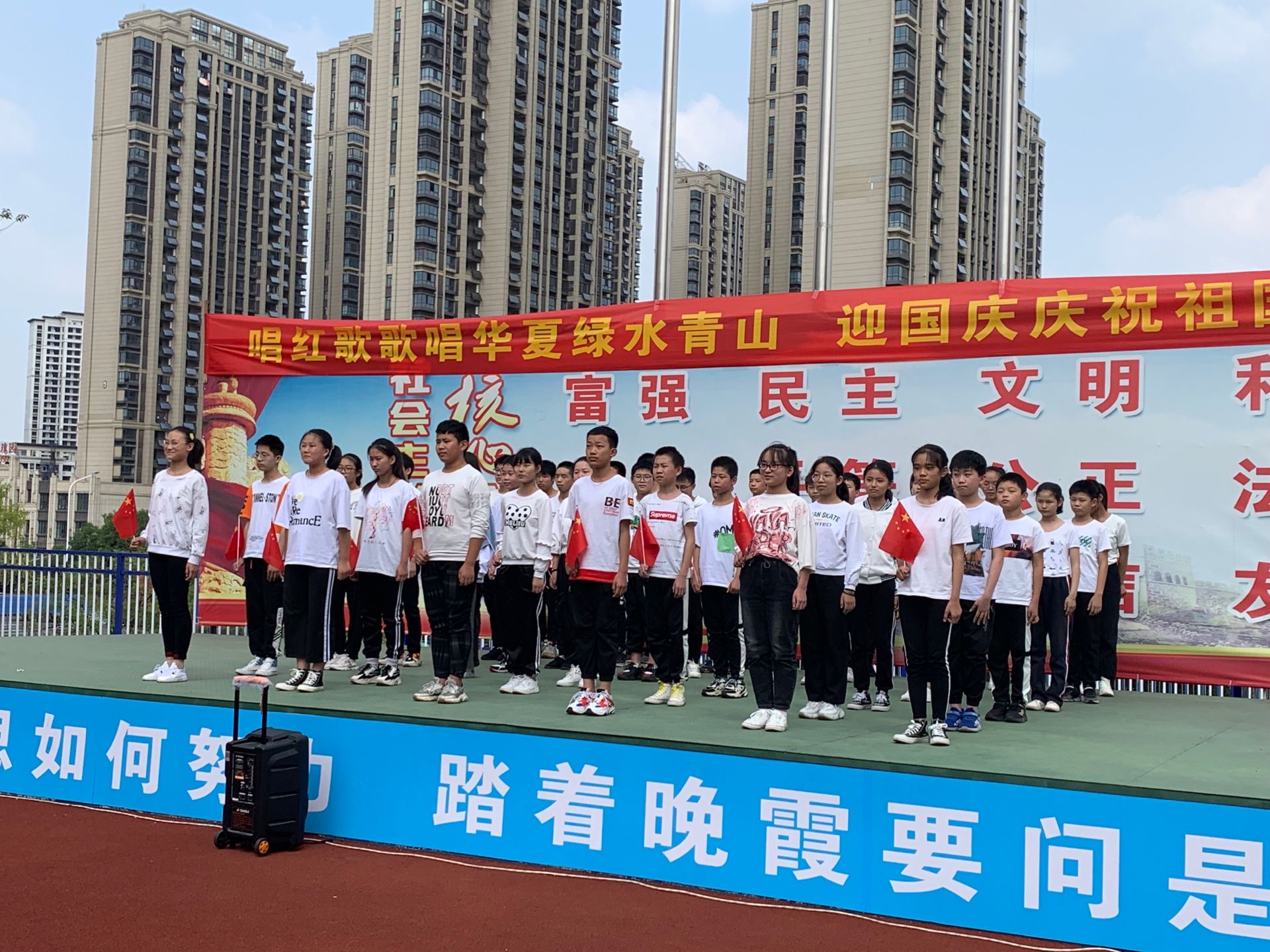 今天,2020年9月30日中午12点,六安市鹏飞学校全体师生也欢聚一堂。唱红歌歌唱华夏绿水青山,迎国庆庆祝祖国繁荣昌盛。中小学各年级以举办唱红歌比赛的形式,隆重庆祝中华人民共和国成立71周年。