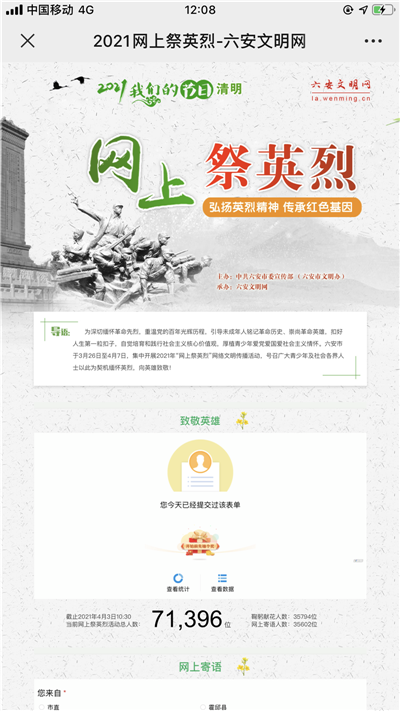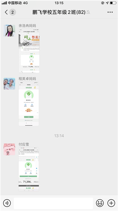 3月30日上午,在2021年清明节即将来临之际,六安市鹏飞学校全体中小学生,在专业老师和班主任的带领指导下,集中开展了一次网上祭英烈,献花留言活动。寄托了莘莘学子对革命先烈无限崇敬之情,和对当下幸福生活的无限热爱和感恩之情: