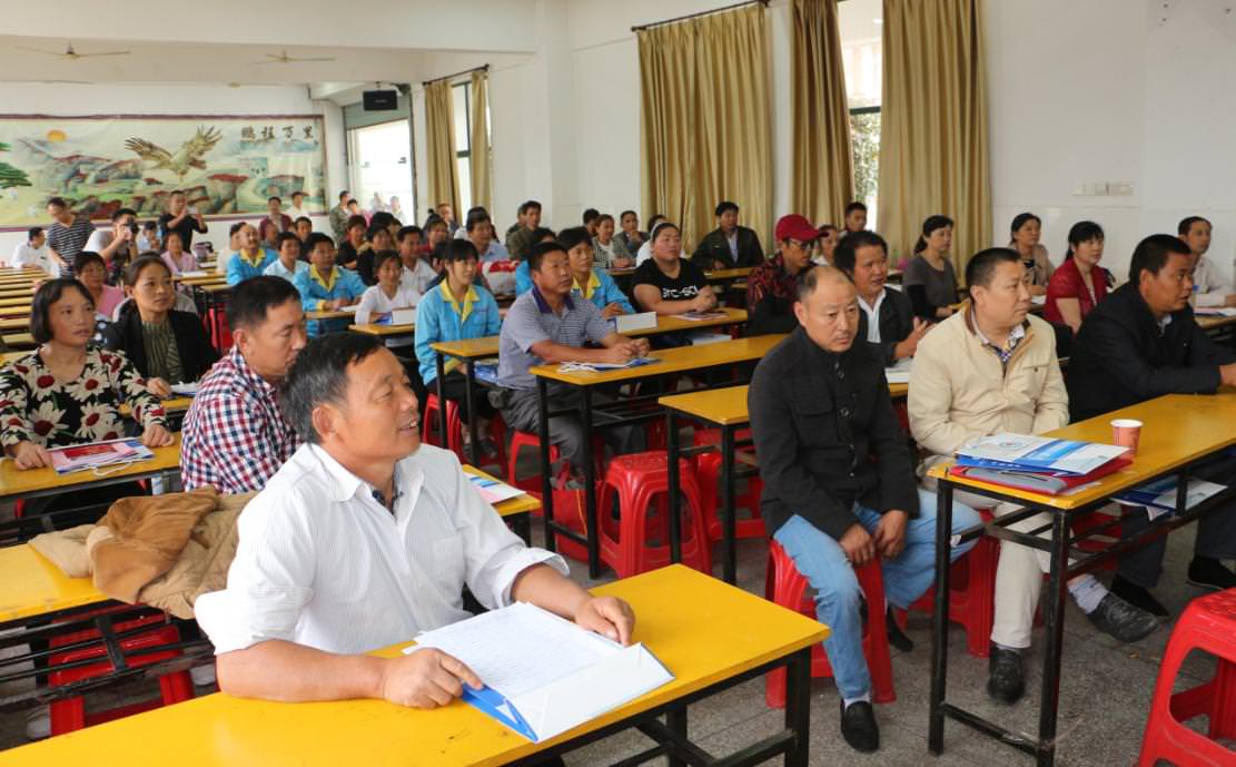 培训后结束后,鹏飞学校校长杨青同志及与会的人保局领导,同参会的困难学生家长合影留念。