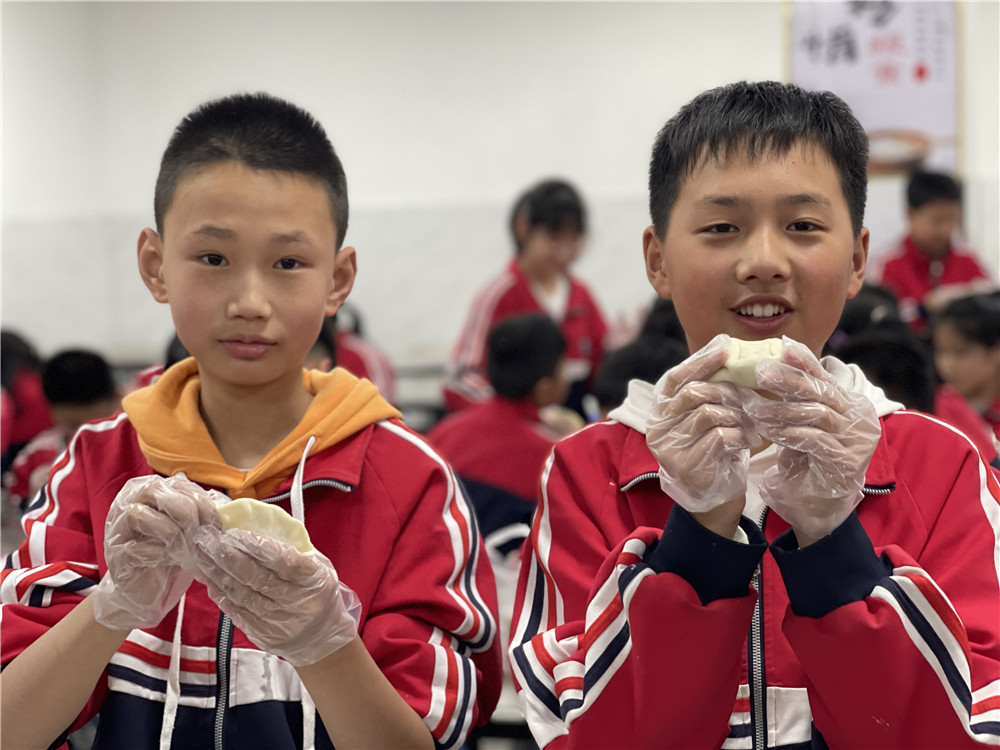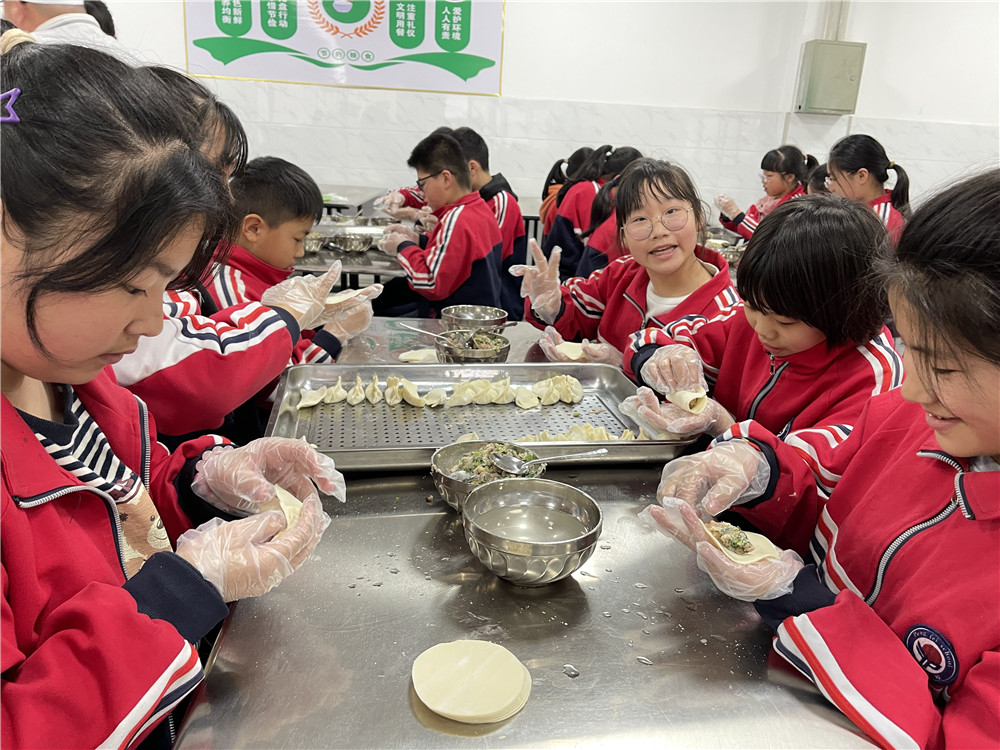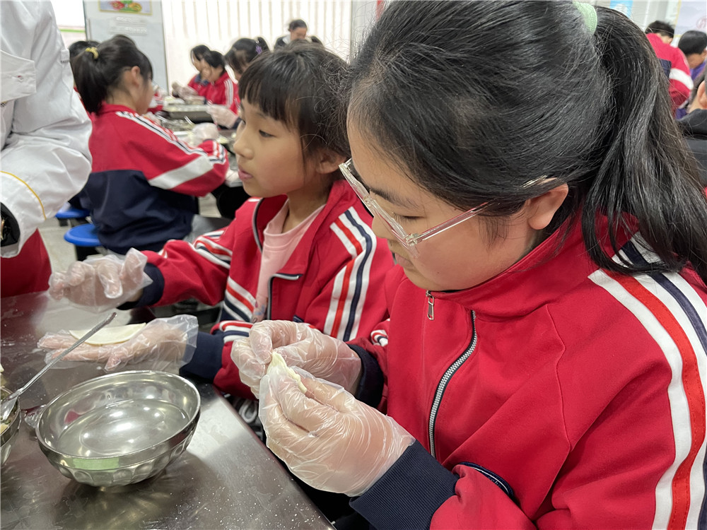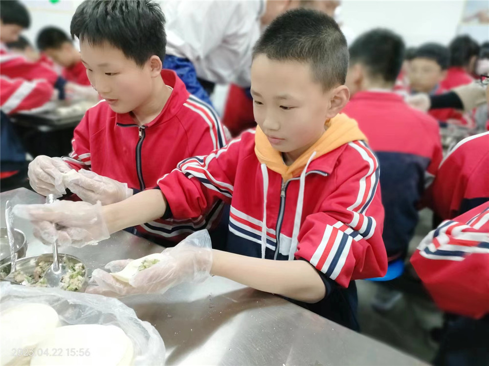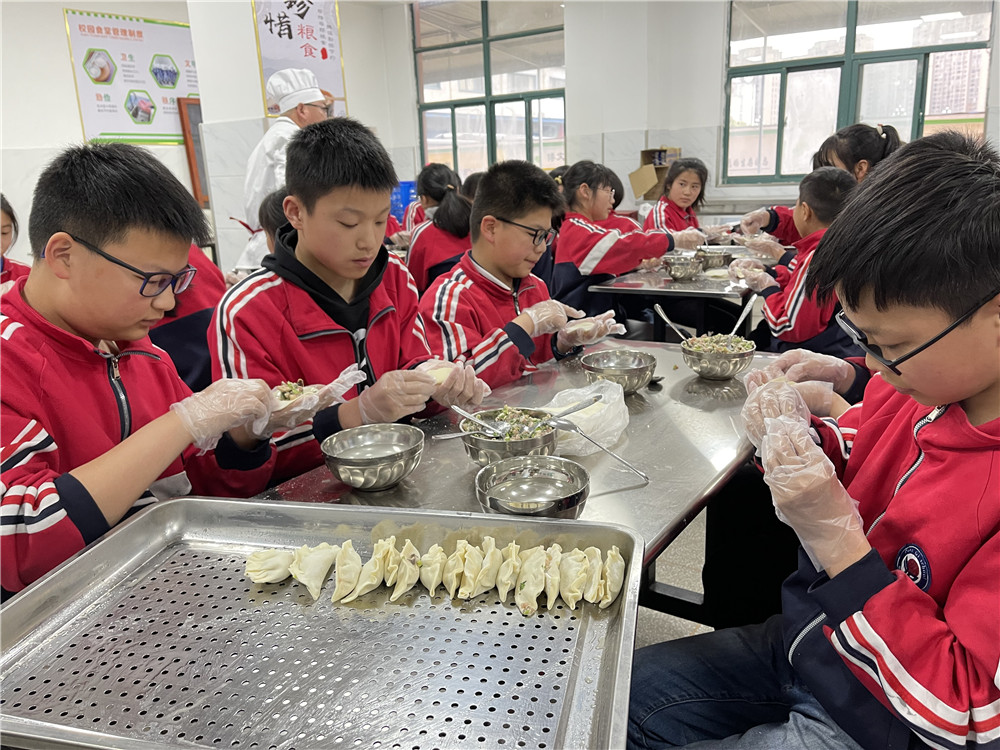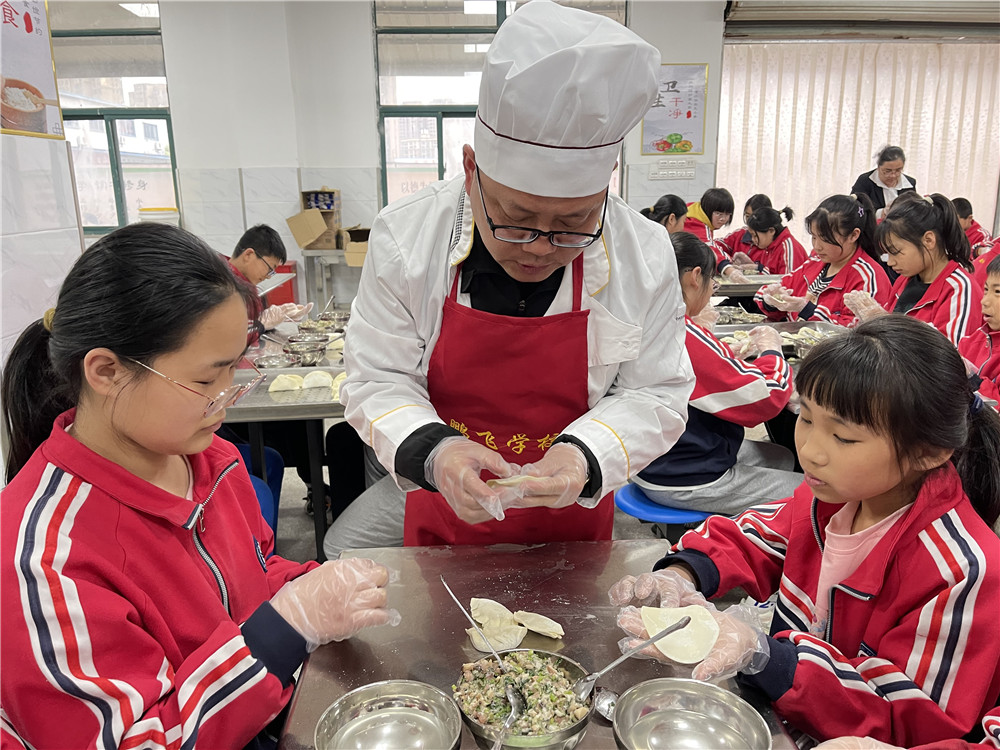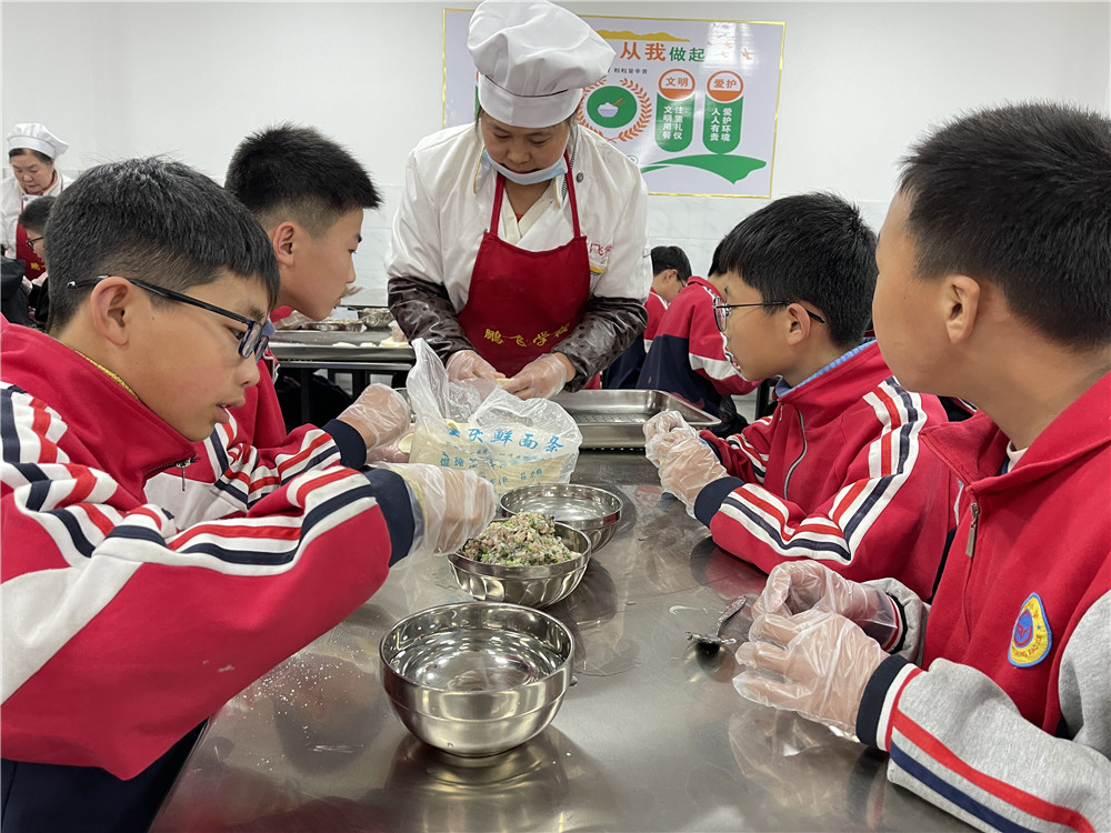 4月22日下午,为培养学生的劳动观念,增强同学们的生活技能,六安市鹏飞学校组织部分同学进行学包水饺活动。