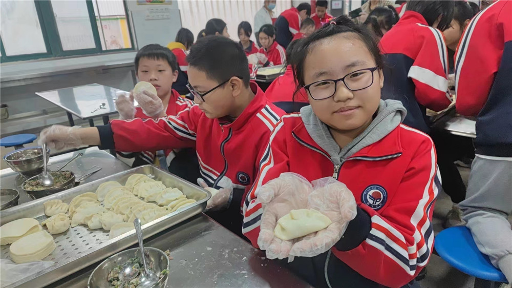 经过了近一节课的劳作,1300多个水饺包完了,同学们意犹未尽,看着自己的劳动成果,脸上溢满了自豪的神情。带队的老师和食堂的师傅们,看着这些兴奋孩子们,相视露出了会心的微笑。