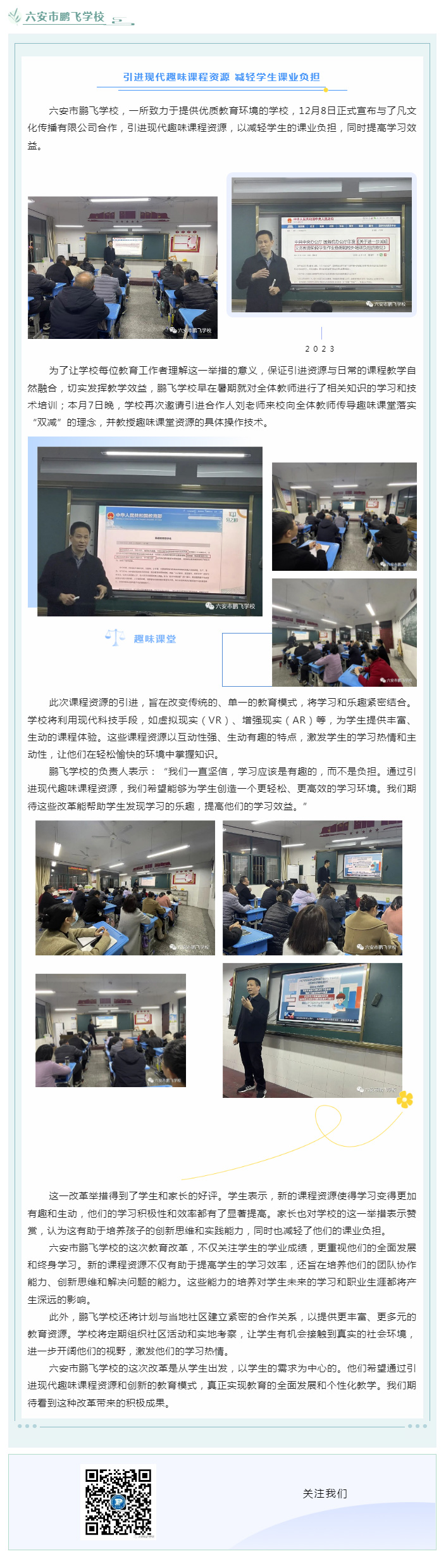 六安市鹏飞学校引进现代趣味课程资源减轻学生课业负担