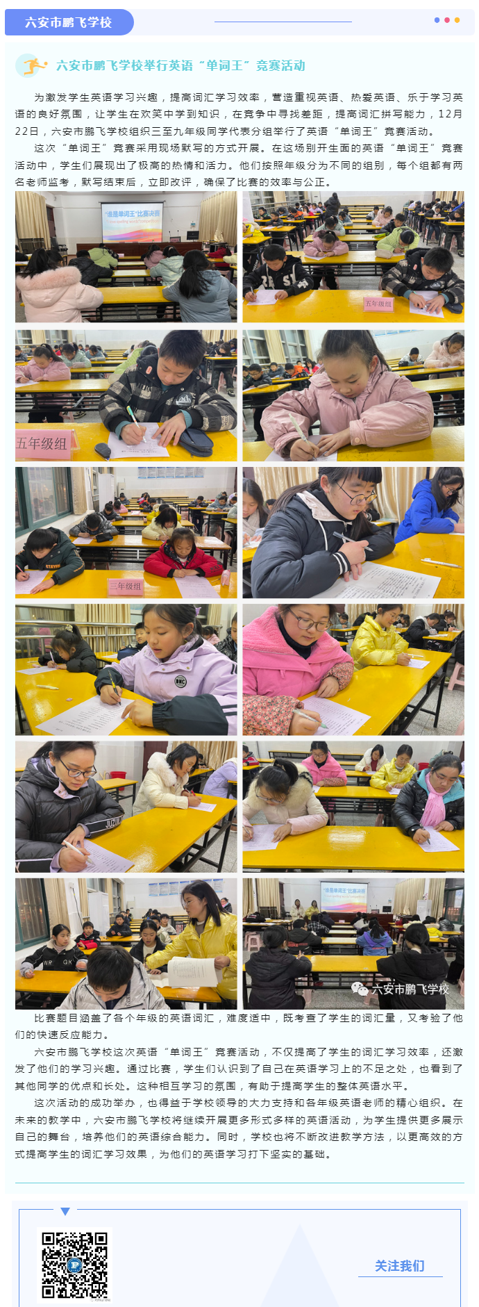 六安市鹏飞学校举行英语“单词王”竞赛活动