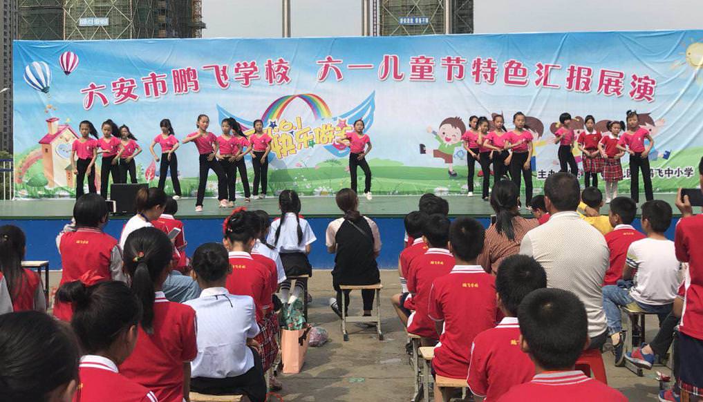 “六一”是个愉快的日子;“六一”是个特殊的日子;“六一”是一个见证成长的日子;“六一”是一个展示自我的日子;“六一”还是一个寄予希望、激励未来的日子。5月31日,六安市鹏飞学校的文艺展示舞台,装扮一新、条幅铺展,节日的气氛浓重而热烈。下午14:00,庆六一文艺汇演正式拉开序幕。