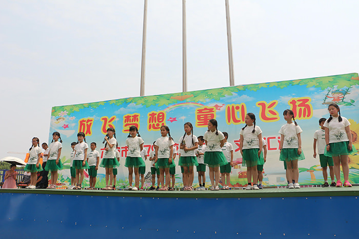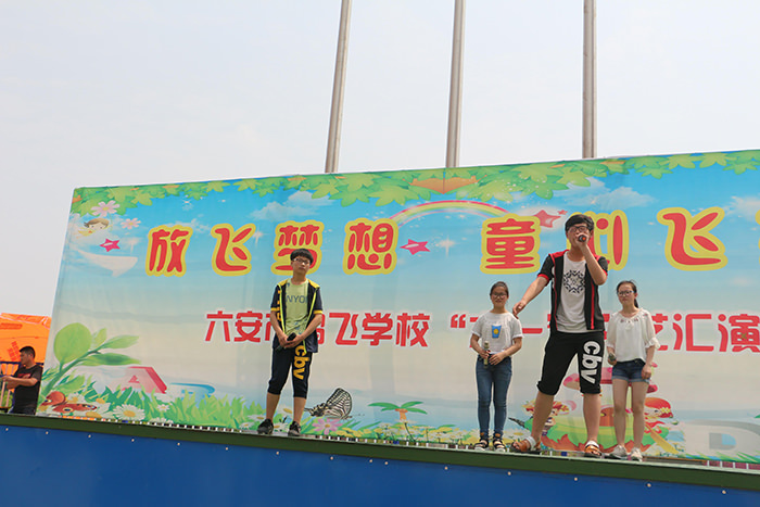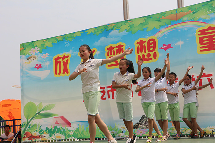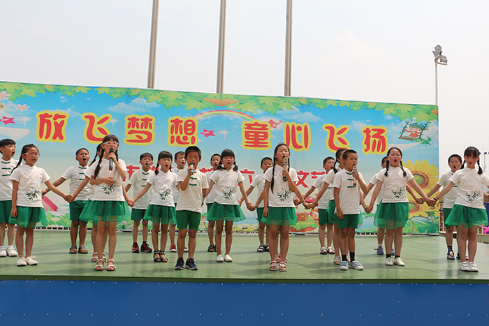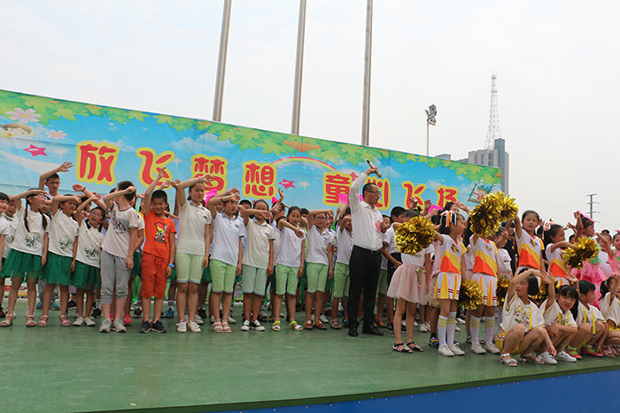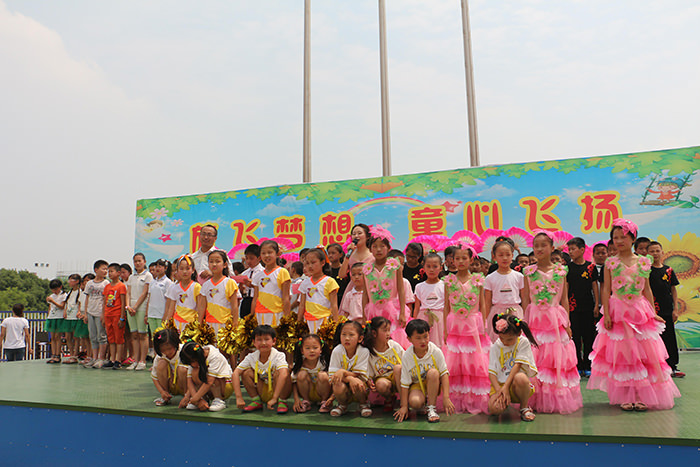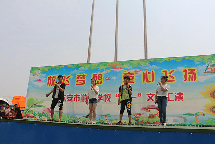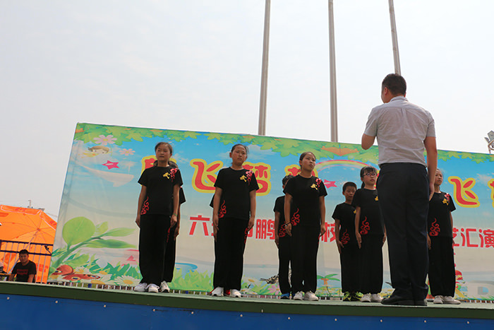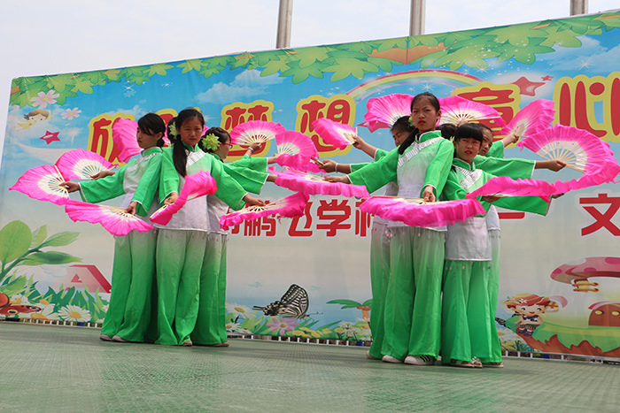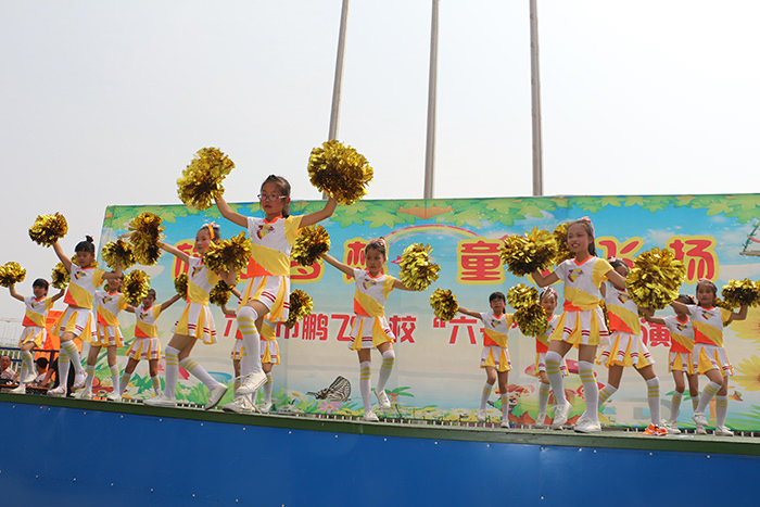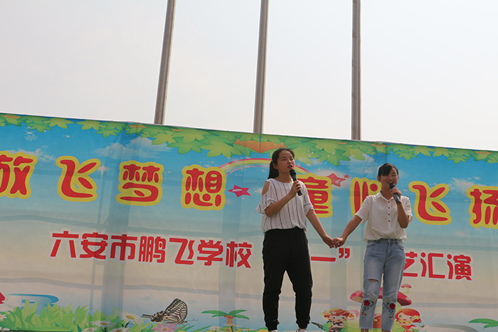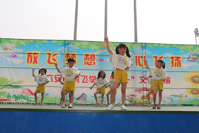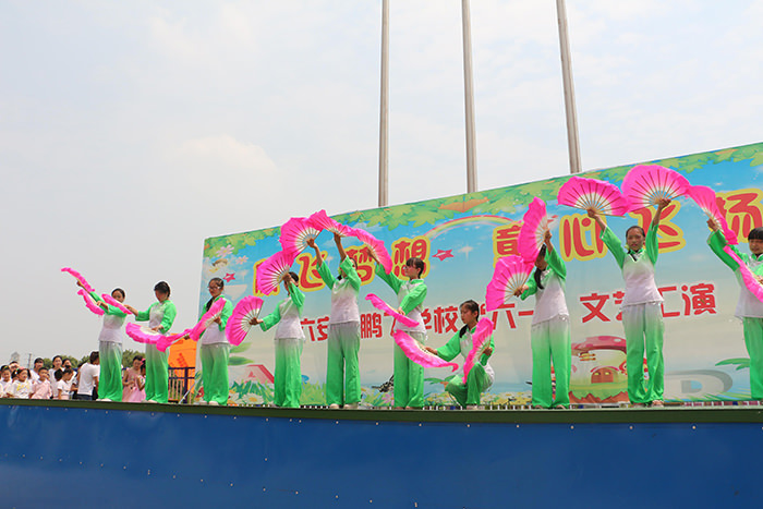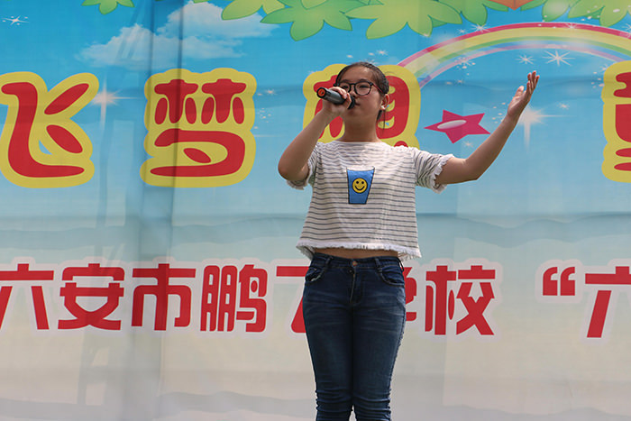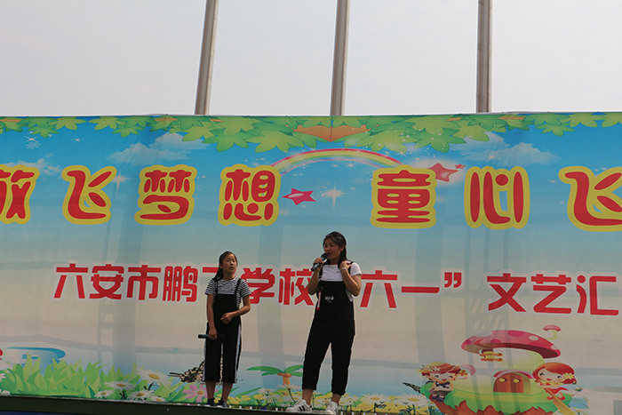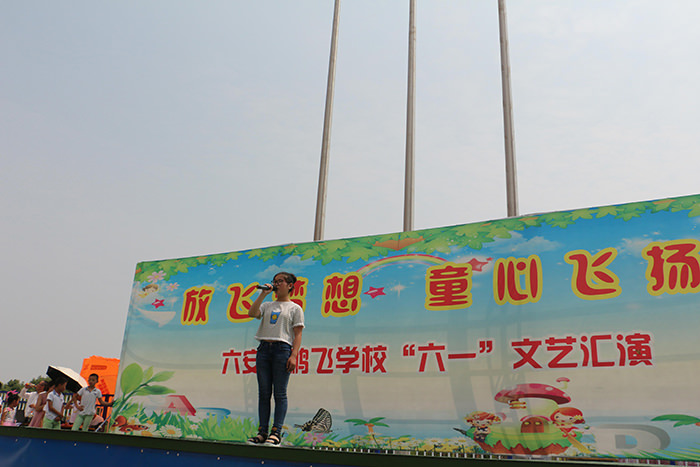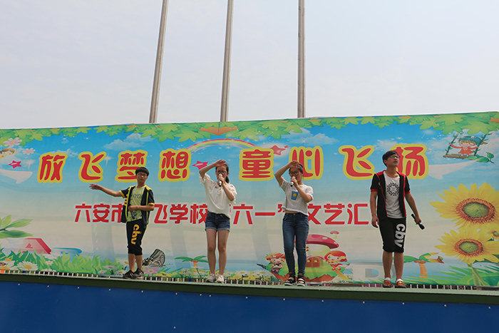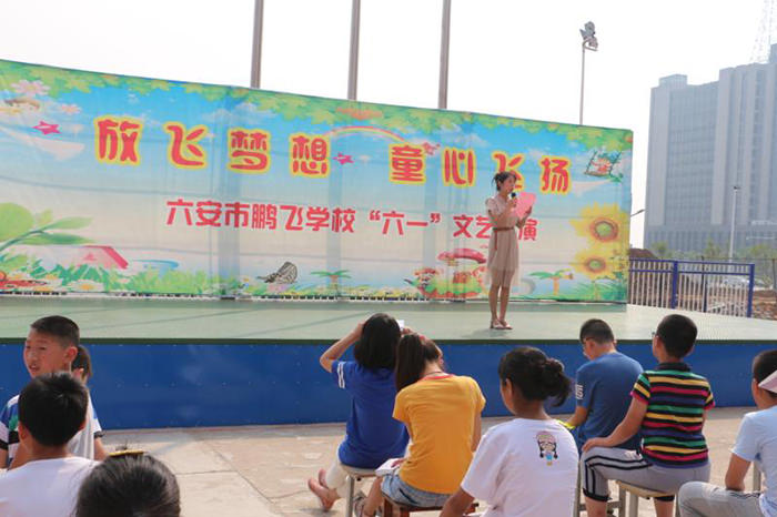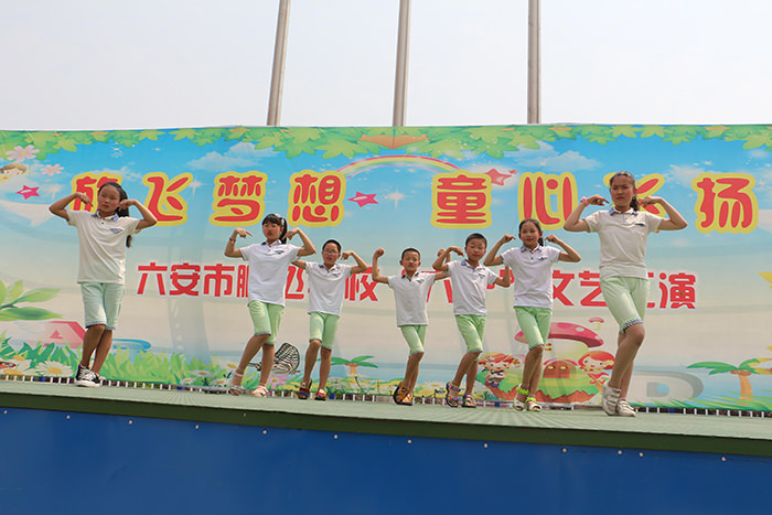 “六一”是一支歌,跳跃着美妙的音符;“六一”是一首诗,充满着幻想和憧憬;“六一”是欢乐的海洋,是孩子们的节日。2017年6月1日上午9点,在舞蹈《中国梦》的动感旋律中拉开了六安市鹏飞学校“六一”文艺演出的序幕。尽管天气特别炎热,老师们、家长们、孩子们的热情却丝毫未受到影响。接下来一个多小时的时间里,六安市鹏飞学校的运动场变成了欢乐的海洋,孩子们纷纷登台表演,展风采、献才艺,把她们充满憧憬的瑰丽梦想、雏鹰展翅的艺术风采和蓬勃向上的精神风貌尽情展现在舞台上。