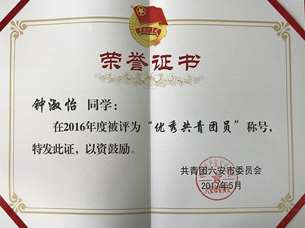 钟淑怡同学获得2...